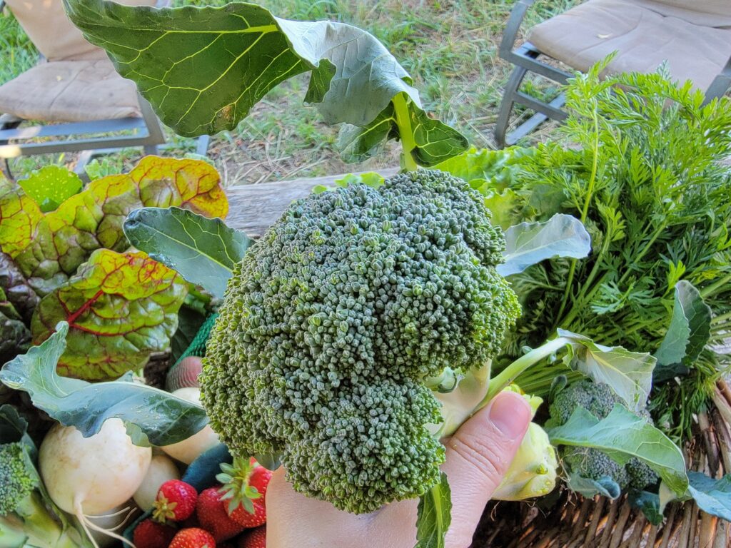 - Broccoli: Wrap the broccoli loosely in a plastic bag and keep it in the veggie bin or your fridge. Don’t use an air-tight bag, as broccoli continues to respire after being harvested and needs room to breathe. It will keep for over a week, but is firmest and tastiest if used within a few days. To make sure your broccoli is fully cleaned and not carrying any tag-alongs from the farm, soak broccoli immediately before cooking, head down, in cold, salted water for 5 minutes. Broccoli can be steamed, stir-fried, or eaten raw. For salads or veggie platters, try blanching in boiling water for 1 to 2 minutes, then chill. You can add broccoli to soups and stews in the last 10 to 15 minutes of cooking time.