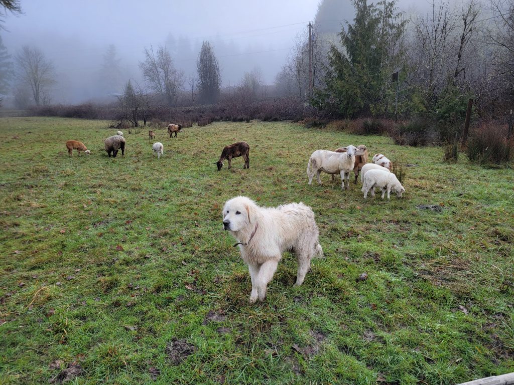 A week or two ago, we got some sad news about our wonderful guard dog, Canyon. The poor boy has cancer, and tomorrow, we’ll have to say goodbye. Canyon has spent his life dedicated to guarding the sheep here at the farm. He takes his job very seriously! A harder worker you will never find. We are so sad to say goodbye, but grateful he will be out of pain, guarding sheep across the rainbow bridge. Canyon will be very missed.